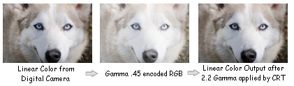 2.2 output, resulting in you seeing the original linear color photo.